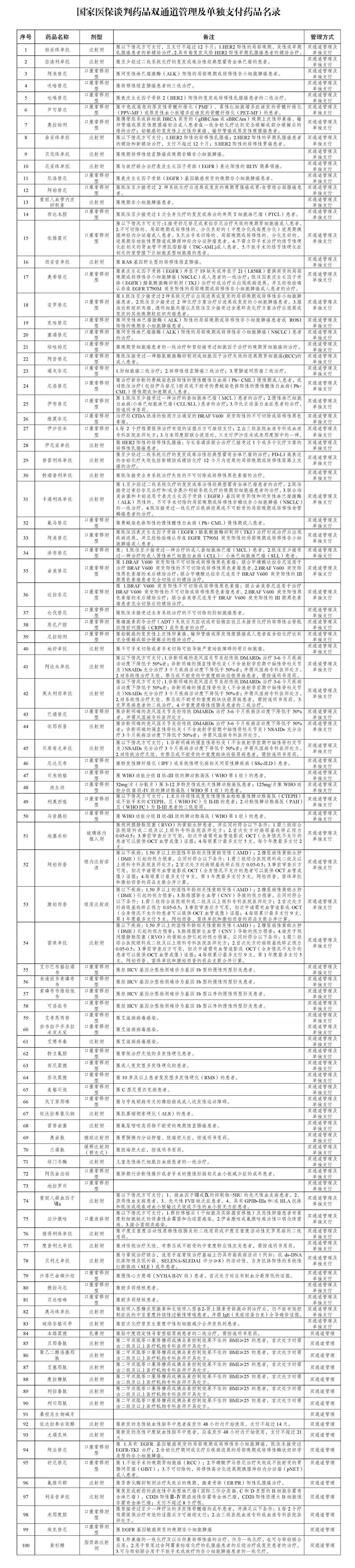 江蘇省國(guó)家醫(yī)保談判藥品雙通道管理及單獨(dú)支付藥品名錄